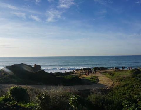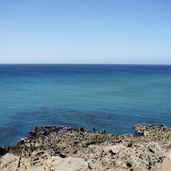 建议自驾前往,旁边有停车场,收费是10迪拉姆。往下走会看到阔然开朗的一面海,深蓝深蓝的,非常漂亮。岸边有白色咖啡厅,很多外国人在这里休息。
