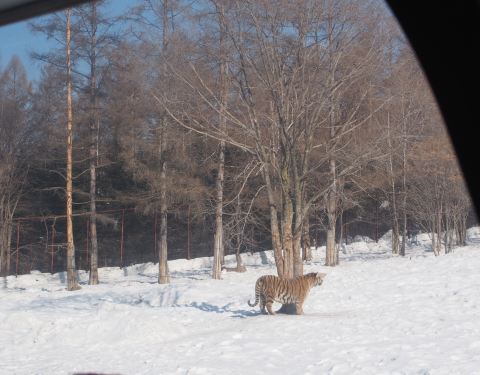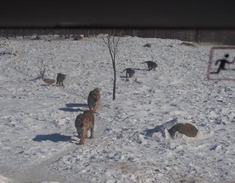 冻的大家都选择坐封闭的车,虽然带网的车观看效果更好。下车后还可买肉串喂老虎,有表演,还有熊,鸟等动物