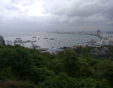 这一次由于订的酒店为将军山上,所以顺便爬到山顶看看,在山顶上差不多可以看完整个芭提雅,特别是芭堤雅海滩,一目了然。不过有点不好是,自由行的话,交通不便利,有双条上山,不过很长时间,坐摩托车上去要120株。