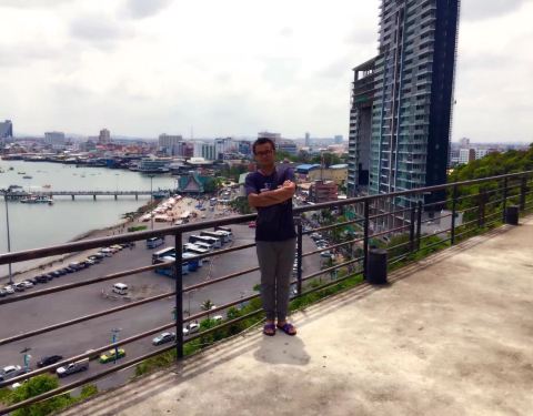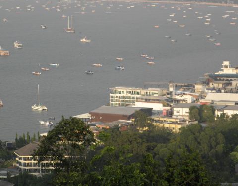 芭堤雅将军山观景台,由于她原先是驻泰美军基地的一个俱乐部。是芭堤雅的至高点,远眺太平洋暹罗湾,海湾里星星点点船舶漂在湾里。没有了四十年前航母上飞机起落的呼嘯声。宁静,视野开阔,半海半岸的景色特别壮观。