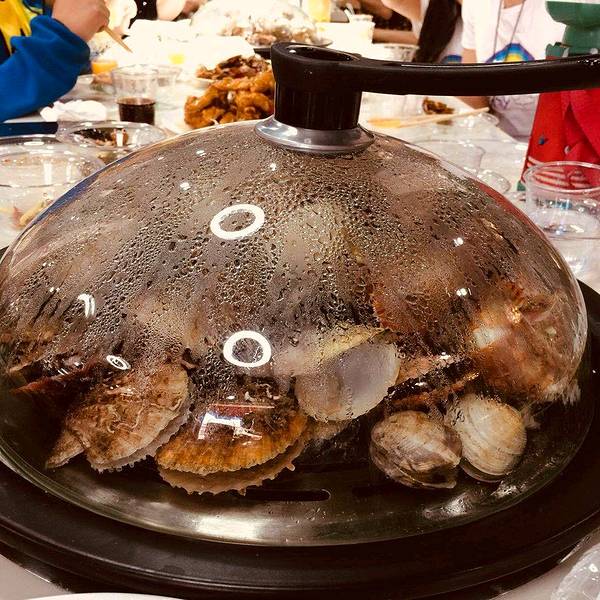 14:10抵达唐山湾小吃一条街因为午餐错后时间点的原因,上菜还是比较快滴,而且味道不错呦!清蒸贝类🐚和皮皮虾(2大锅😛)石斑鱼🐟香辣花蛤🐚回锅肉(好吃🍖)蒸南瓜🎃、白薯🍠、玉米🌽、山药🍢🐚文蛤里面还有还有一只小螃蟹🦀,看来文蛤🐚捕食也会捕海鲜同类呀🌊饭后散步在小吃街上正好有个乐队在激情演绎,而且都是轮流当主唱滴,多才多艺!海边一个超大车轮样式的风筝🌼,似乎在这里招手迎接各路游客🤗夕阳余晖收录在案📷酒店周边夜景🌃