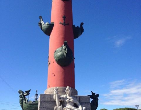 灯塔呈现砖红色,上面有船头形状装饰,基座上有四座雕像,分别象征着俄罗斯四大河流瓦西里广场的港口两侧,树立着两根巨大的圆柱,这是曾经为入港船只导航的灯塔。灯塔呈现砖红色,上面有船头形状装饰,基座上有四座雕像,分别象征着俄罗斯四大河流。 港口这里的河面很宽,可以看到对面的冬宫和远...瓦西里广场的港口两侧,树立着两根巨大的圆柱,这是曾经为入港船只导航的灯塔。灯塔呈现砖红色,上面有船头形状装饰,基座上有四座雕像,分别象征着俄罗斯四大河流。 港口这里的河面很宽,可以看到对面的冬宫和远处的彼得保罗要塞。 展开