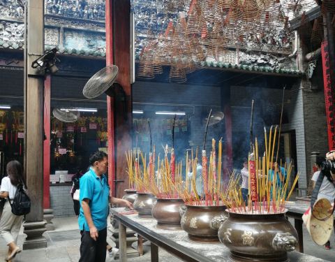 ...我我们要不要拜神求缘,推荐给我们的香烛,还好不贵,50000越南盾,内部香味很重,有点历史意义周末跑来华人街拜神来了,连门口的阿姨都是说粤语的,问我我们要不要拜神求缘,推荐给我们的香烛,还好不贵,50000越南盾,内部香味很重,有点历史意义.
