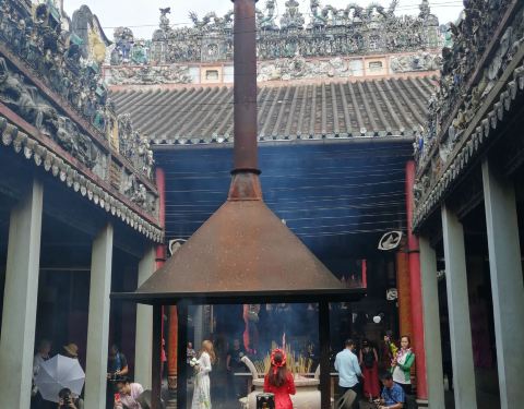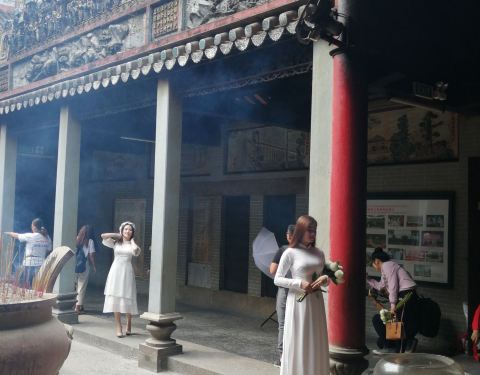 如果你在胡志明市旅游,可以快速参观一下。值得一看!这是一座位于胡志明市中心的中国寺庙这是一座位于胡志明市中心的中国寺庙。如果你在胡志明市旅游,可以快速参观一下。一座有着悠久历史的有趣的中国寺庙,我们看到一对夫妇正在拍摄婚纱照。值得一看!
