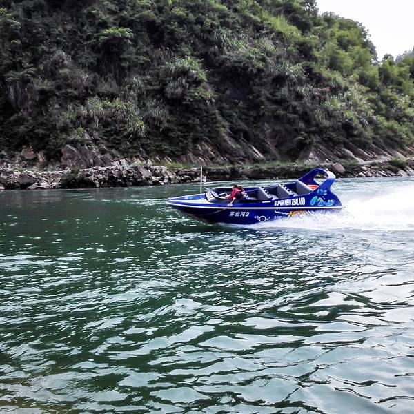 大家总是希望能多一些好玩的水上项目。这种项目本来是新西兰开辟的,但爱玩的中国人总是能找到好玩的东西茅岩的景区都是特别适合夏天去的,一个是九天洞,另一个便是喷射飞艇与漂流。茅岩河是澧水上游50多公里长的一段河。茅岩河可分为两段:上段为平湖游,起点是九天洞下的苦竹河,经青安坪,然后到终点站鱼潭电站;...茅岩的景区都是特别适合夏天去的,一个是九天洞,另一个便是喷射飞艇与漂流。茅岩河是澧水上游50多公里长的一段河。茅岩河可分为两段:上段为平湖游,起点是九天洞下的苦竹河,经青安坪,然后到终点站鱼潭电站;下段是漂流,起点是温塘镇热水坑,然后到达市内。午后,我们从九天洞坐车前往今天要参加的喷射飞艇的地方,距离不远,但是车整整开了一个小时。这种事不用惊讶,因为在整个湘西地区就是这样的!车一路经过苦竹寨后再转向我们接下里要前往的地方,这里也是今天的最后一个景点。一路上大家都在讨论天气这么热,一定要玩水才过瘾。但后面的玩水项目确实让我们吃了一惊。因为西线景区这边开开始运营。所以基本上接待能力还不够成熟。值得庆幸的是西线除了原定的漂流意外更是在开业前夕为这个夏天引进了亚洲首条高山峡谷急流喷射快艇。这种项目本来是新西兰开辟的,但爱玩的中国人总是能找到好玩的东西。在随处可见漂流的时代。大家总是希望能多一些好玩的水上项目。具体这快艇有多刺激!坐上去以后你就知道了。就是在这条名为茅岩河的峡谷中,我有幸作为首批体验者来感受亚洲首条高山峡谷急流喷射快艇。值得注意的一点,在快艇附近需要防止一些凉棚或者防晒伞之类的。不然如果玩这个的人多了以后根本就是晒得受不了。切记要防止中暑。在岸边苦等了四十分钟,我终于登上了快艇,没错。就是这个亚洲首条喷射式飞艇。我已经热的受不了。我就是要下去湿个身,吹吹风风凉快。凉快!开飞艇的司机是从国外借过来。据说驾驶技术一流。在上船后先带我们试了一圈以后便询问大家是否安好。在表示大家都安好以后便开始了惊险刺激的湿身。速度飞快到感觉整个船就要起飞了。驾驶员直接一个刹车,回旋,一甩!一连串的动作在一秒内完成。这个飞艇的头瞬间插入水中。船尾甩起了千层浪花。直接拍打在我们的脸上。一下就凉快了。这次是真的凉快了!除了飞艇,还有亚洲最长的漂流是非常值得前往体验一次的。没错,这就是张家界的西线旅游景区。如果你在天门山和武陵源看够了山,那就来西线旅游景区这边凉快凉快吧!