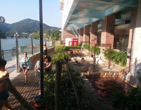 ...有汗蒸房,湿蒸房,水上乐园、有十多二十个温池,温泉面对有条湖,很美,温泉边的桂花香飘香四溢……