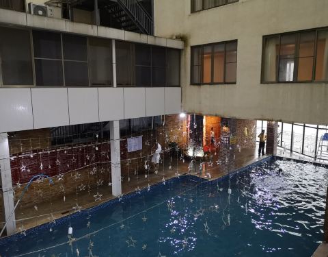 国旅推介的酒店,地理位置很好找,一进温泉镇在大路旁边标志很大,楼下有超市买东西方便,感谢酒店大堂朱经理的热情服务,我订的房间有出入很快帮我换好双床房还送多一张温泉票让老公陪我和女儿去泡:订的星空房不...