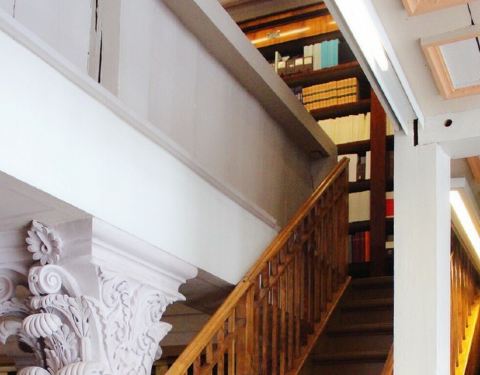 ...图书馆,这是一个非常重要的研究性的图书馆,而且图书馆不管是它的建筑还是里面图书的摆放都非常古典