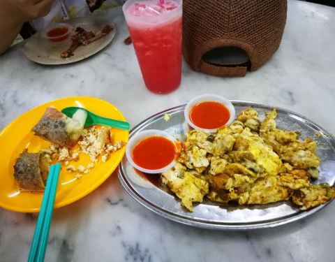蚝烙 炒面,煎蕊 沙爹串 还有印度飞饼 和广东菜 美滋滋