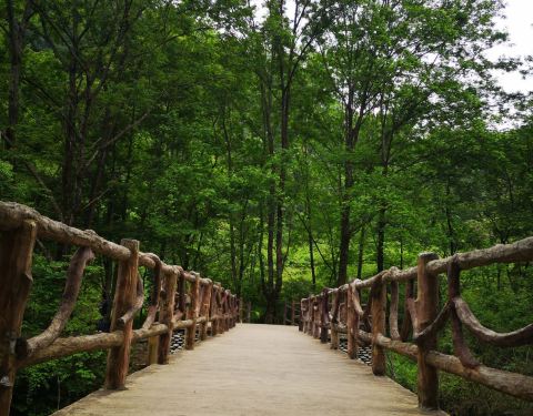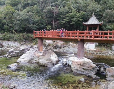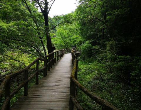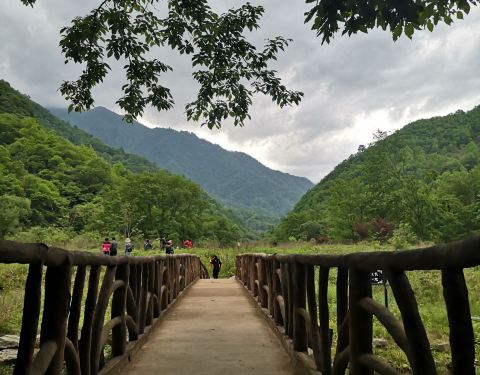 自驾游。大门进去到停车场有一段距离,好像那里才有电瓶车。景点分成栈道,人工湖,沟,瀑布。开车进去住在景区中心湖的位置,没坐电瓶车但门口说还是要买电瓶车的票,旺季车不让开进。路上见到已有的和正建的客栈,都没开,整体冷清。设的景点没意思,湖是人工的,沟不远,瀑布不高。可能一路开车走来穿山越岭看的美景太多了。住里面空气好,吃菜新鲜,没事四处转转,热水是太阳能的,下雨天就没有。论自然景色,反而是大门外阳坝镇那段供当地人走的栈道更好,时间原因没走,下次有机会一定走走