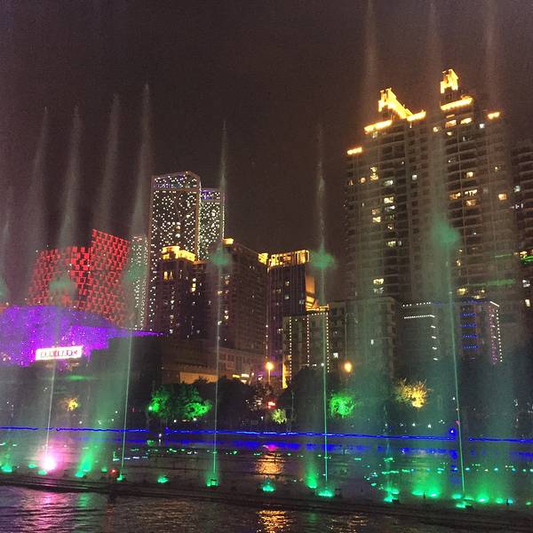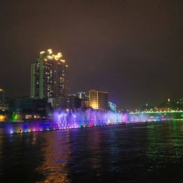柳江夜景不错,瀑布跟喷泉有看头
