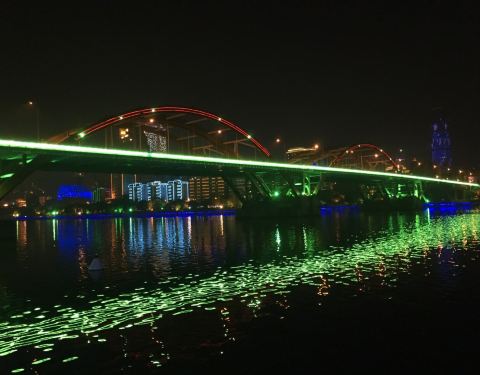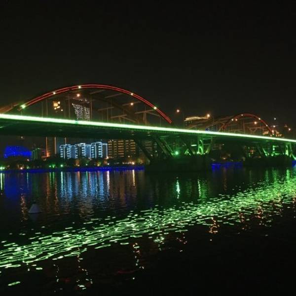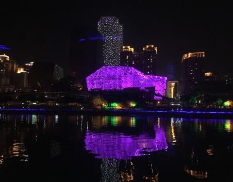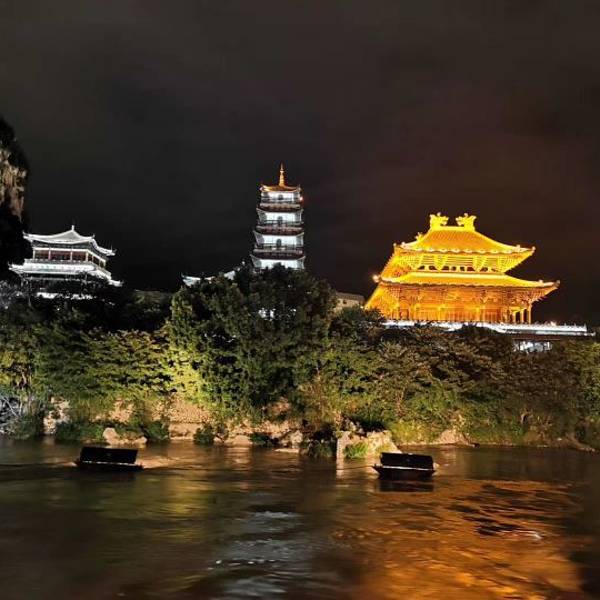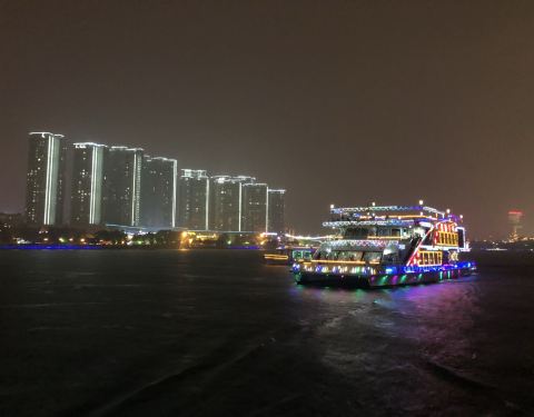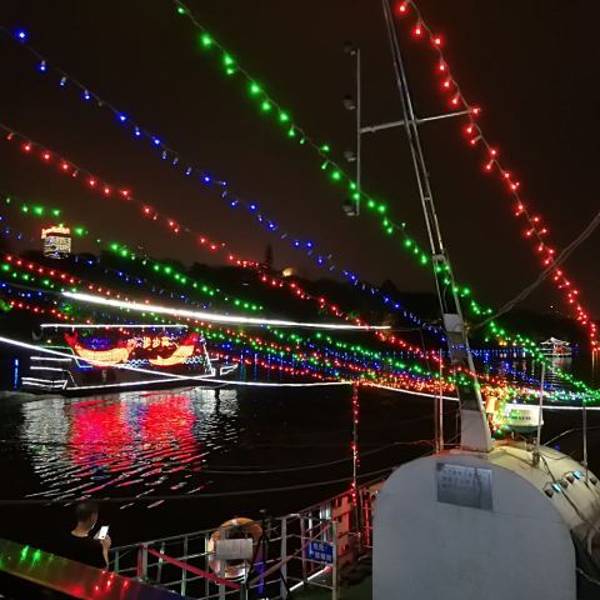 流光溢彩,一个小时左右的游览时间,能将柳江沿途美景尽收眼底