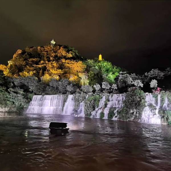 还有柳江两岸的迷人灯光风景,人工大瀑布,可惜的是由于疫情没有看到喷泉⛲️夜游印象最深的是柳江上面的多座跨江大桥,美仑美奂仿佛置身于布达佩斯。还有柳江两岸的迷人灯光风景,人工大瀑布,可惜的是由于疫情没有看到喷泉⛲️