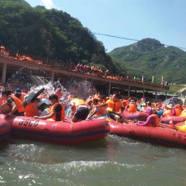 天气很好,真的很不错,大家玩的都很开心,兑换很方便,比景区直接买便宜很多,去得早,要等12点30放水,大概顺利下去船里人配合好不被挤到船堆儿里面,估计2小时吧,开始前还有主持人有洒水车有水炮,人多玩的很开心,一定要组团去,一言不合就泼水啊,水枪近距离战斗没有实际用途,钢盆盆最实用了,一个船6到8人,不用自己划,期待雨水多了后再次去玩。