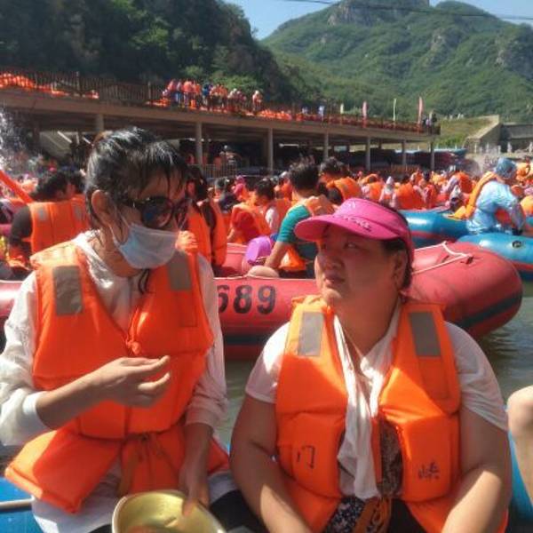 天气很好,真的很不错,大家玩的都很开心,兑换很方便,比景区直接买便宜很多,去得早,要等12点30放水,大概顺利下去船里人配合好不被挤到船堆儿里面,估计2小时吧,开始前还有主持人有洒水车有水炮,人多玩的很...