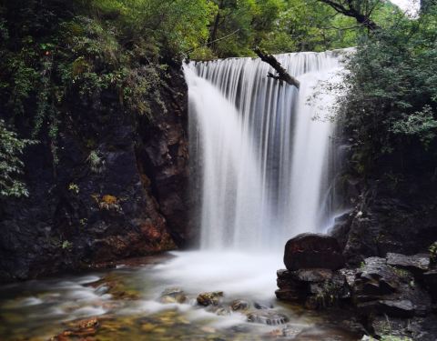 扎龙沟深处,挺拔耸立的神女峰下,有一帘泉水汇集而成的瀑布,绿毯般的山坡上,泉水飞落而下,迸珠溅玉,景观甚为壮观。