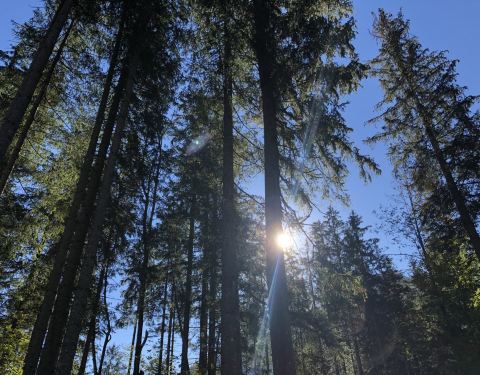 与魔法森林相邻,阳光灿烂时湖水颜色好看,可以先逛这里再下坡去魔法森林,或者从魔法森林处爬坡到这里休息