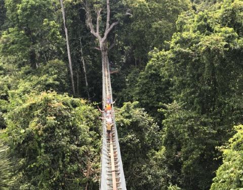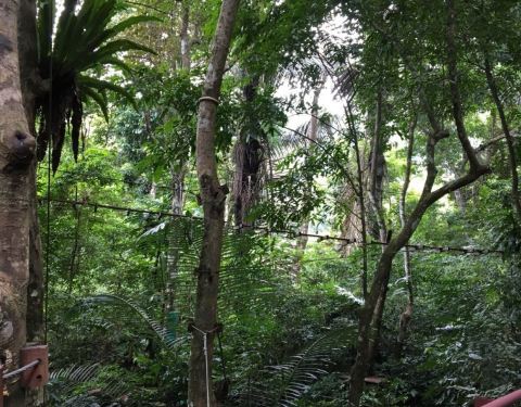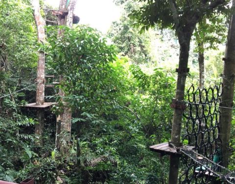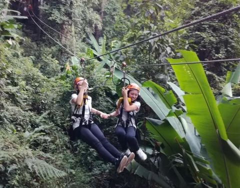 在丛林间享受跳跃飞翔之感,饱览脚下郁葱热带雨林。