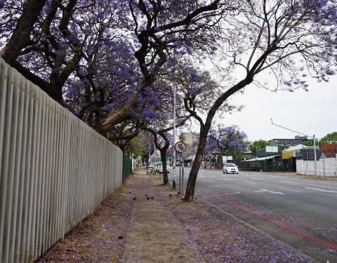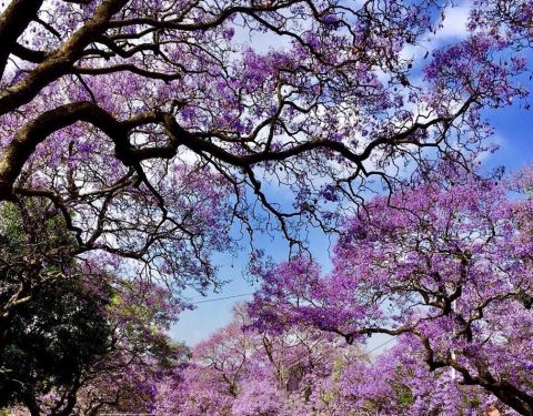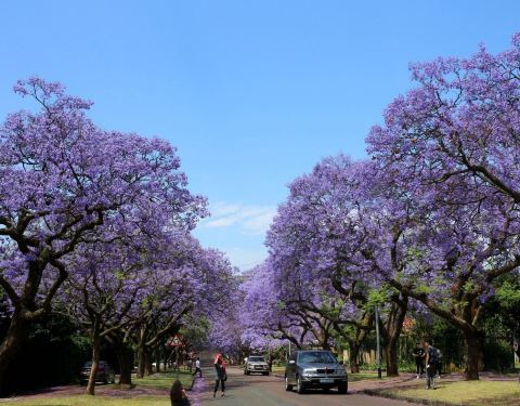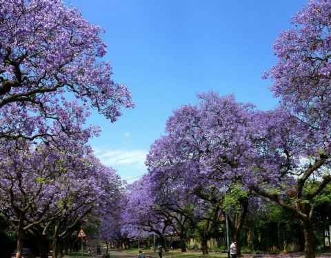 每年的10月到11月,比勒陀利亚都会盛开蓝色花的树,很美丽,也成为一道风景