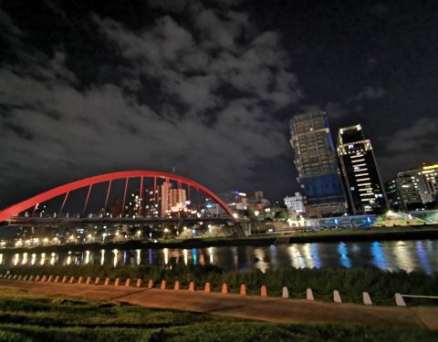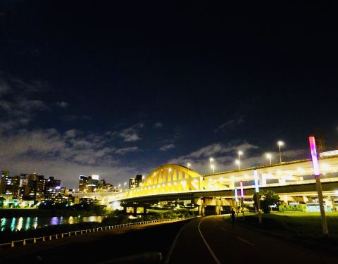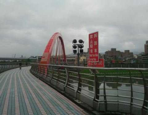 逛完饶河夜市后踱步过来,气温晚上有些偏凉,不过对于特别容易燥热的我来说正好,风吹吹。走到了松山的彩虹桥,rainbow bridge,谷歌地图还是相当精准。S型的桥,红色的很是惹眼。连接了松山区饶河街和内湖区新明...