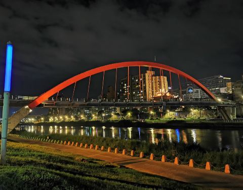 逛完饒河夜市後,可以到彩虹橋散散步,望著星星甜言密語一番。