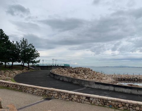 Rinku Park,人少的很,当地人来跑步,看海。如果有段音乐就好了。我坐着吃了个饭团子