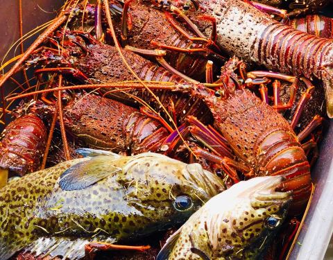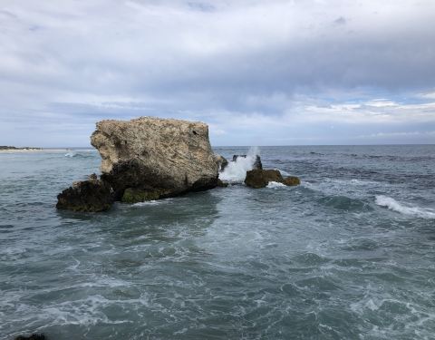 去波浪岩的歇脚点,小镇一早还是能看到居民们在悠闲的在咖啡馆早餐,海边有两块巨大的岩石,水下有许多龙虾,石斑。我们每周来一次海里,渔业局每人限抓8只够标准的。