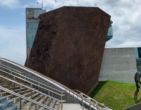 特殊的造型為近年來頗受注目的話題建築,觀眾可以自館外地面直接拾階而上,享受極目四望的遼闊感及攀...