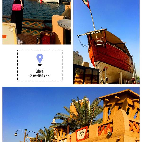 游览艾布姆Al Boom旅游村,感受迪拜河风光 抵达 迪拜 的第一站便是艾布姆Al Boom旅游村了;艾布姆Al Boom是迪拜古老的家族,也是阿联酋从古至今最强大的造船家族,从这里可以看到 迪拜 的造船事业发展历史,阿拉伯人是如何打造船支以及征服波斯湾;体验现代都市与航海生活的交融文化。当地阿拉伯人会时常在这里举行婚礼、宴会;如果运气好的话我们还可以看到神秘的黑白袍子盛典!很淳朴可以深刻了解当地的风土人情。当然,我们没有这个运气。-_-||旅游村没什么好玩的,面积不是很大整个村子很别致。很喜欢这样可爱的风格建筑;拿起手机各种拍摄根本停不下来。途经阿拉伯文化艺术品中心,这里是艺术品的天堂,世界知名手工艺品大师的杰作,奢华生活情调的各类装饰品、丝绸、波斯毯等,目睹阿拉伯文化工艺之精华。 黄金、香料、椰枣、藏红花等 阿联酋 特产由于身心疲惫却少了购买的欲望;在 阿联酋 随处可见的华人要比 埃及 多很多,所推荐的每一样商品总有一种made in china的感觉。和郑小朋友一直在卖萌与自恋之间徘徊~