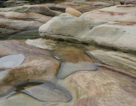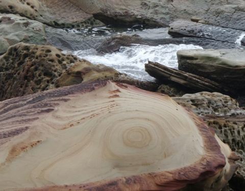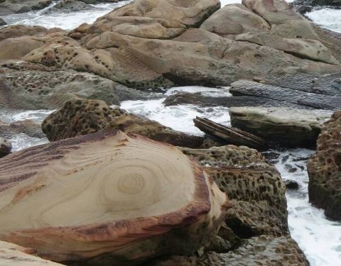 因为这一带是沙岩地质,由于受到东北季风的风雨影响,沙岩中的节理受到雨水侵蚀及风化作用,而形成带状花纹第一站 南雅奇石