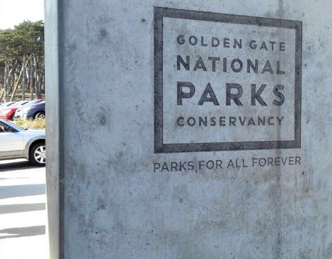 金门国家公园占地81000英亩,最大的设在城市的国家公园,是联合国认可的生态保护区。其从南到北跨越整个旧金山市。我们首先来LANDS END OUTLOOK,顺着山坡:,一路松柏-古树:,登高来到崖:边-,扑面而来的是天海无...