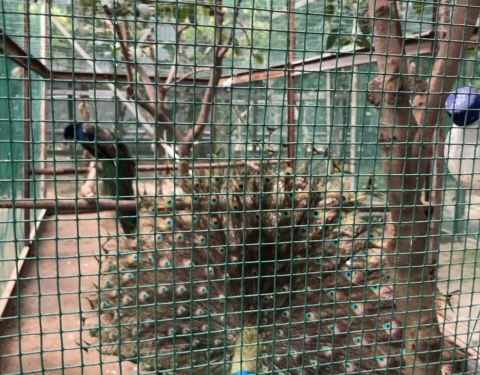 里面真是挺大的,热带植物非常多,温室大棚里花草树木的。还有一些小动物,可以给它们喂食
