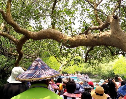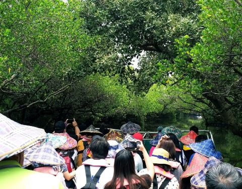 ...行其中总有一种水的尽头会是桃花源的感觉,船上讲解员会介绍沿岸的植物跟遗址,看到了不少新奇的植物四草风景区号称台湾的小亚马逊,两岸的红树林枝桠交错在一起,形成一条绿色隧道,穿行其中总有一种水的尽头会是桃花源的感觉,船上讲解员会介绍沿岸的植物跟遗址,看到了不少新奇的植物。