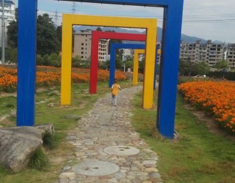 花海广场,在龙泉青瓷博物馆旁边,现在花开得正好,很漂亮,还有小猪小狗蘑菇等等,小孩子非常喜欢,跑来跑去的,很兴奋!有很多小朋友