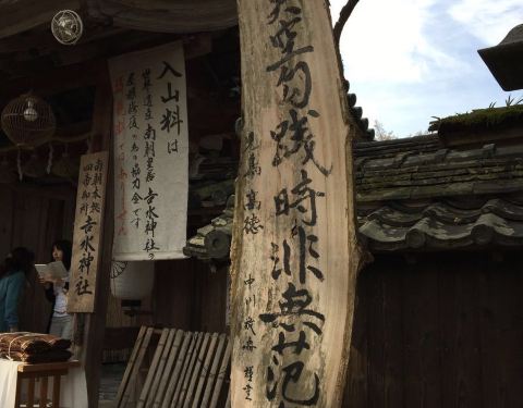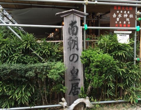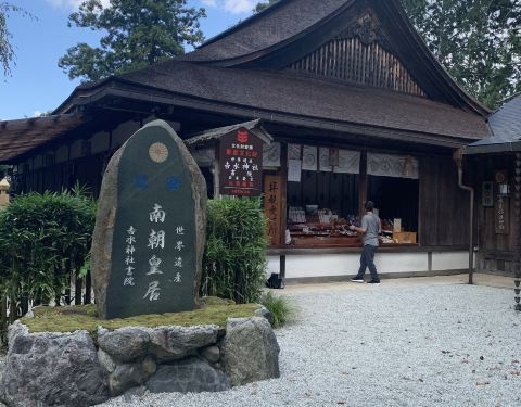日本南北朝时期南朝四位天皇皇居,也是丰臣秀吉组织赏樱的地方,神社里面有后醍醐天皇的御座和丰臣太阁赏樱时的屏风。 吉水神社的一目千本御守非常美,因为这里是吉野山著名的一目千本之处,樱花盛开时在庭院中居高临下面向山坡,可以欣赏整片山坡开满了粉红山樱的绝美景色。