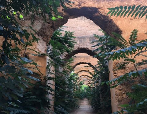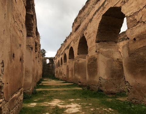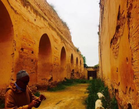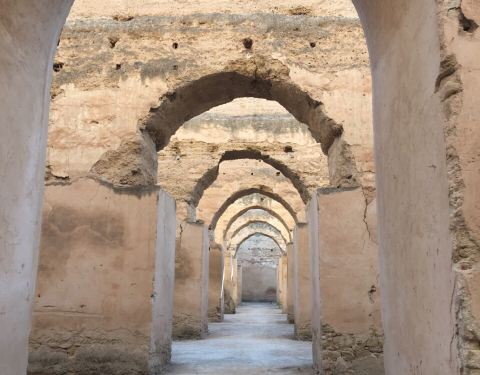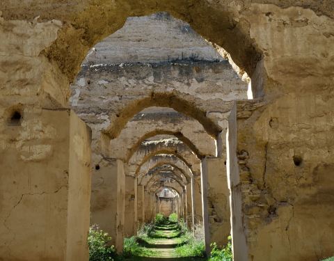 梅克内斯城建于11世纪,是摩洛哥王国皇城之一,1672年由阿拉维王朝的第一位君主穆拉伊·伊斯梅尔定为国都。传说这位君主爱马,王宫里养了10000匹骏马,他每天去马厩里巡视,并精心设计和建造了大型的马厩。在王宫附近还建造了一座规模宏大的粮仓。马厩和粮仓至今保存完好,令人惊叹。