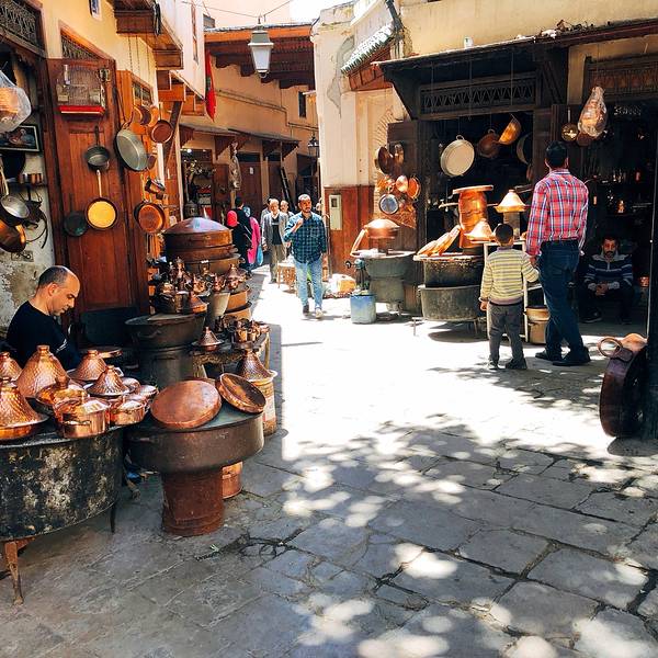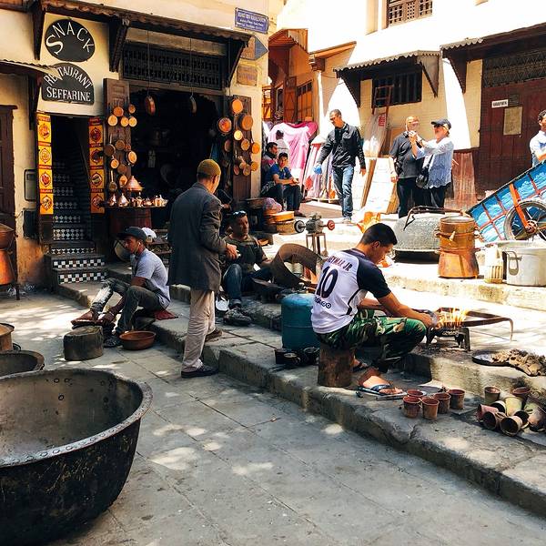 卡拉维因清真寺出来之后就是 非斯 老城瞎逛了。卡拉维因清真寺打铜摩洛哥 特色花盘子