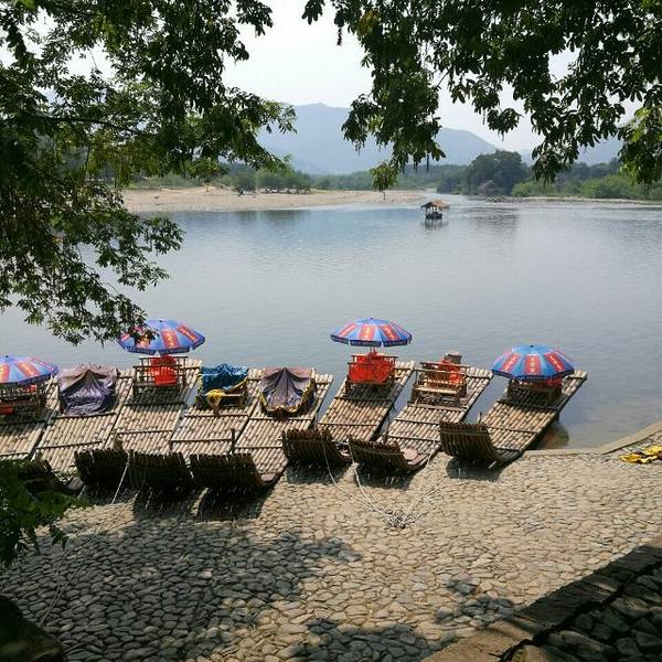 ...江2桥码头漂流,景色还是不错的,就是水比较小,5个人一个竹筏360元,漂30钟不到,还是小贵的