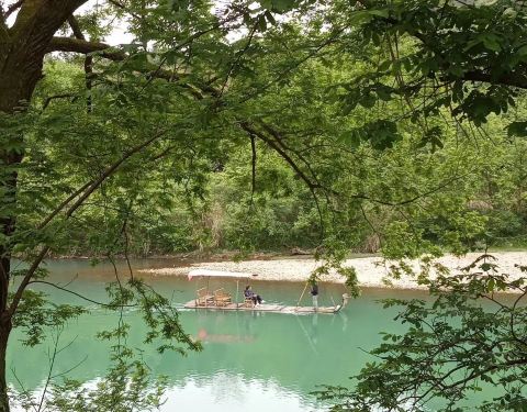 竹筏是按筏收费,所以如果人少,建议拼船,比较划算坐竹筏漂流,夏天在楠溪江上吹吹风还是很舒服的,但建议下午4点之后,太阳不那么猛烈了再去,否则很容易晒伤。竹筏是按筏收费,所以如果人少,建议拼船,比较划算。