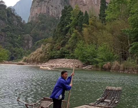 去雁荡山没看到水,就去了楠溪江2桥码头漂流,景色还是不错的,就是水比较小,5个人一个竹筏360元,漂30钟不到,还是小贵的。