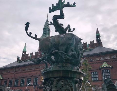 哥本哈根证券交易所是位于根本哈根市中心城堡岛的一座建筑。建于1620, 是丹麦最古老,最知名的建筑之一。他的屋顶是四条盘旋的巨龙,高高的直冲天空。去之前并没有发现这个景点,回来看照片才知道名字,失敬失敬啊