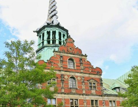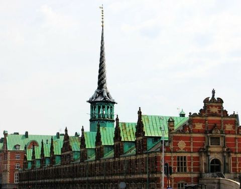 哥本哈根证券交易所是位于哥本哈根市中心城堡岛上的一座建筑。建于1619,是丹麦较古老,较知名的建筑之一。屋顶是四条盘旋的巨龙,高高的直冲天空,高达56米高,既宏伟壮观,又不失艺术气息。