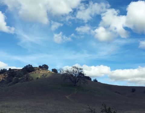 太阳在低低的云层里穿行,风卷着初春空气中的缕缕寒意,那些浮着落叶的溪水,湿润的草场,零落的树木和丘陵,被雨水冲刷之后,微微泛着清新的亮绿。 这里不像是洛杉矶,更像是简·奥斯丁笔空旷淡漠的英国田园。
