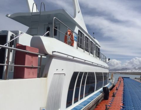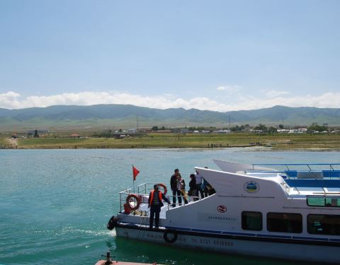 游船是一定要坐的,可以更进一步的体会青海湖的湖光山色,亲近青海湖的湖水,坐大船很平稳,到了湖中...
