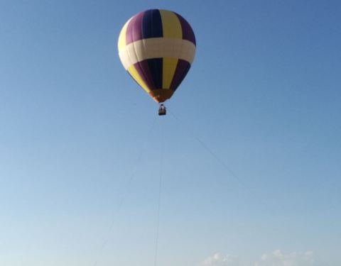 系留式热气球,气球升空在50米高度,有三条绳索系在地面,大致留空几分钟,票价150元。