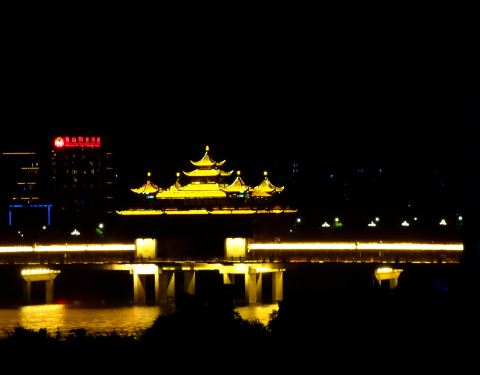 出来的时候就是文峰桥了,这座桥造型很文艺,横跨在新安江上很有气势,就是晚上灭灯灭的太早啦,想拍...