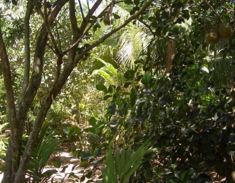 ...,并冲出巨大的三角洲,在三角洲植物茂密,生长着椰子和菠萝蜜等热带植物,并挂在树上,令人惊呀无比