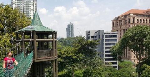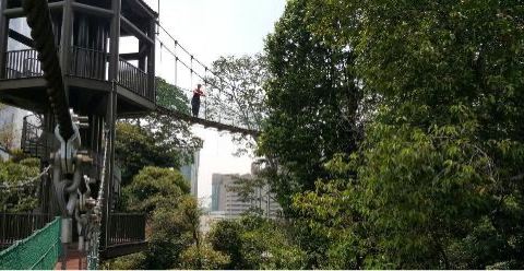 有很多古老的树木,最重要的是里面有吊桥!!配合郁郁葱葱的树林真的很唯美,非常适合拍照,从吊桥就可以走到吉隆坡塔底下了!!