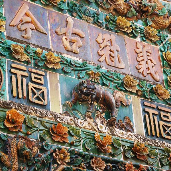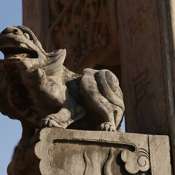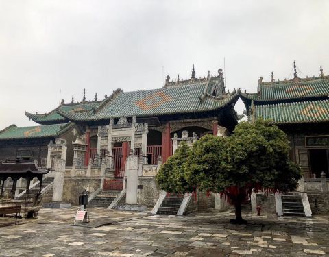 大殿屋顶的琉璃瓦在阳光下闪着光,石雕上的内容非常丰富,花鸟走兽,人物故事无不精致形象,还有影壁上的雕刻,令人叹为观止。 展开