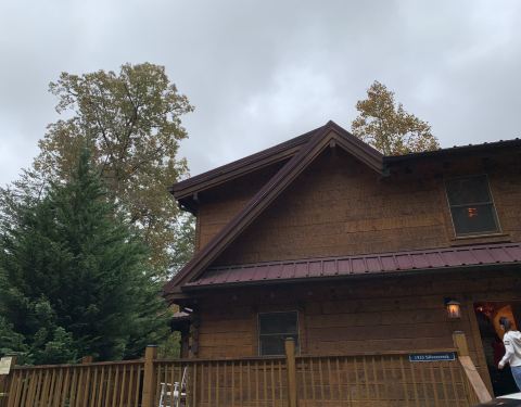 到大烟山国家公园一定要体验一下林中的小木屋,非常漂亮。瀑布不大,但牌子上说这是公园里最受欢迎的瀑布